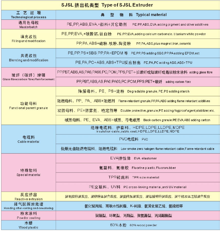 以下是SJSL系列雙螺桿塑料造粒機組的基本技術(shù)信息: